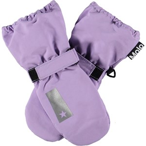 Lila, vattentäta och andningsbara vantar med 3M™ Thinsulate™-isolering. Vantarna har en reflex på framsidan, samt gummmiband och justerbart kardborreband vid handleden. Observera att muddarna på denna modell är något längre än på Mitzy, så det blir ingen glipa mellan vantarna och jackärmen.