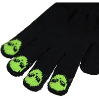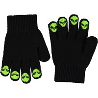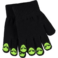 Grå stickade vantar med söta djur på tre av fingrarna. Handskarna har en ribbstickad mudd runt handleden som gör dem bekväma att bära och förhindrar att de glider av handen.