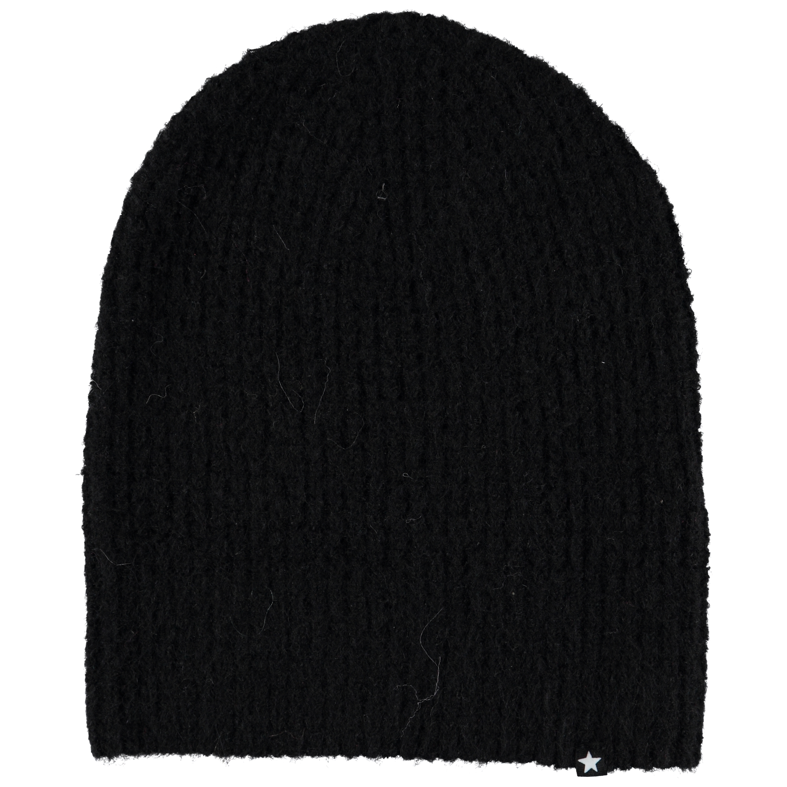 Svart mössa i ullmix med mohair. Mössan kan användas med eller utan uppvik.