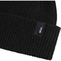 Svart stickad mössa i en ullblandning med uppvik och Molo-logotyp.