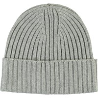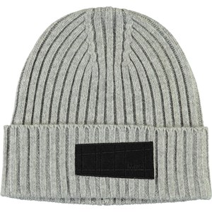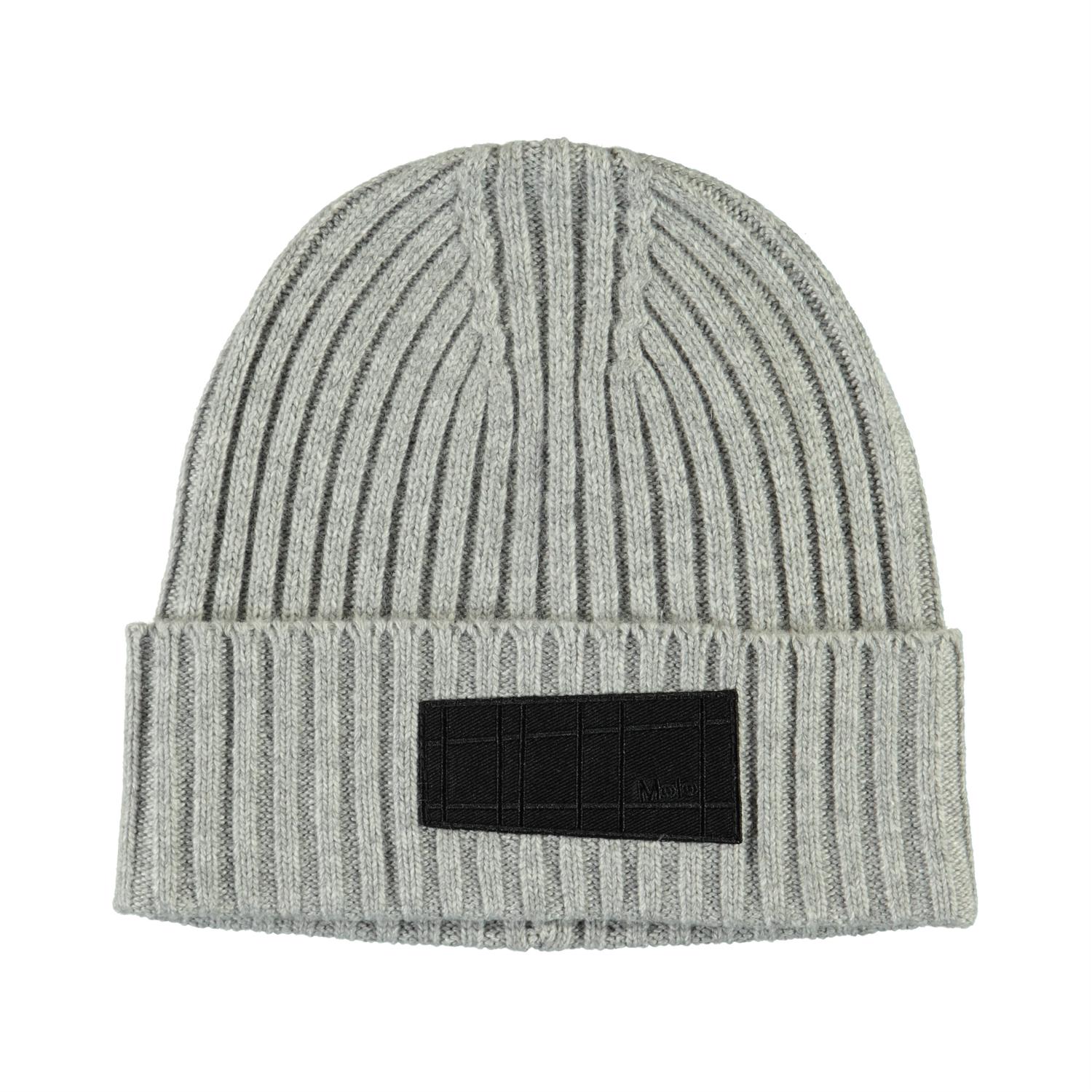 Kabelstickad Grå mössa i ullmix och en uppvikbar kant, samt Molos nya etikett.