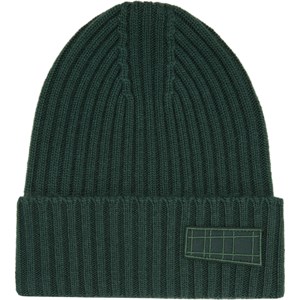 Mörkgrön ribbad mössa med uppvik och Molos logga på framsidan.