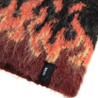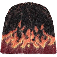 Svart fluffig mössa i en blandning av alpackaull med ett rött flammönster. Kombinera mössan med den matchande tröjan.