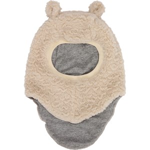 Off-white balaklava med söta teddybjörnsöron för baby och småbarn. Den är i mjuk teddyfleece och perfekt för att hålla nacken, huvudet och öronen varma på kyliga dagar. Balaklavan är fodrad med mjuk gråmelerad jersey.