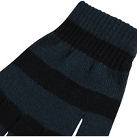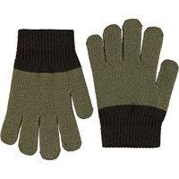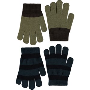 2-pack med stickade vantar med gröna och svarta ränder. Vantarna har en mudd runt handleden som gör dem bekväma att bära och förhindrar att de glider av handen.