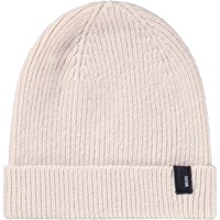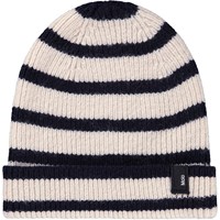 Mörkblå och krämfärgad randig ribbstickad mössa i en ullblandning med uppvik och Molo-logotyp.
