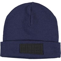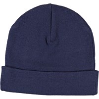 Blå mössa med uppvikbar kant och Molos nya etikett.