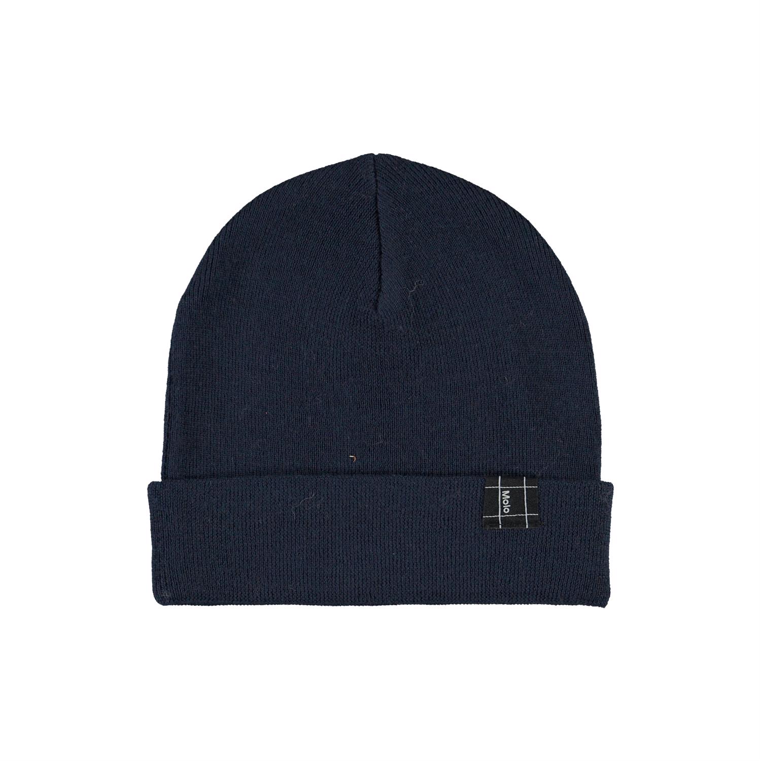 Blå mössa med uppvik i 100% merinoull.