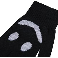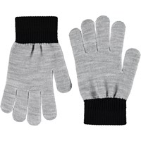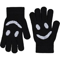 2-pack stickade vantar för lite äldre barn, ett par är grått och svart, medan det andra paret är svart med en grå smiley. Vantarna har en ribbstickad mudd runt handleden som gör dem bekväma att bära och förhindrar att de glider av handen.