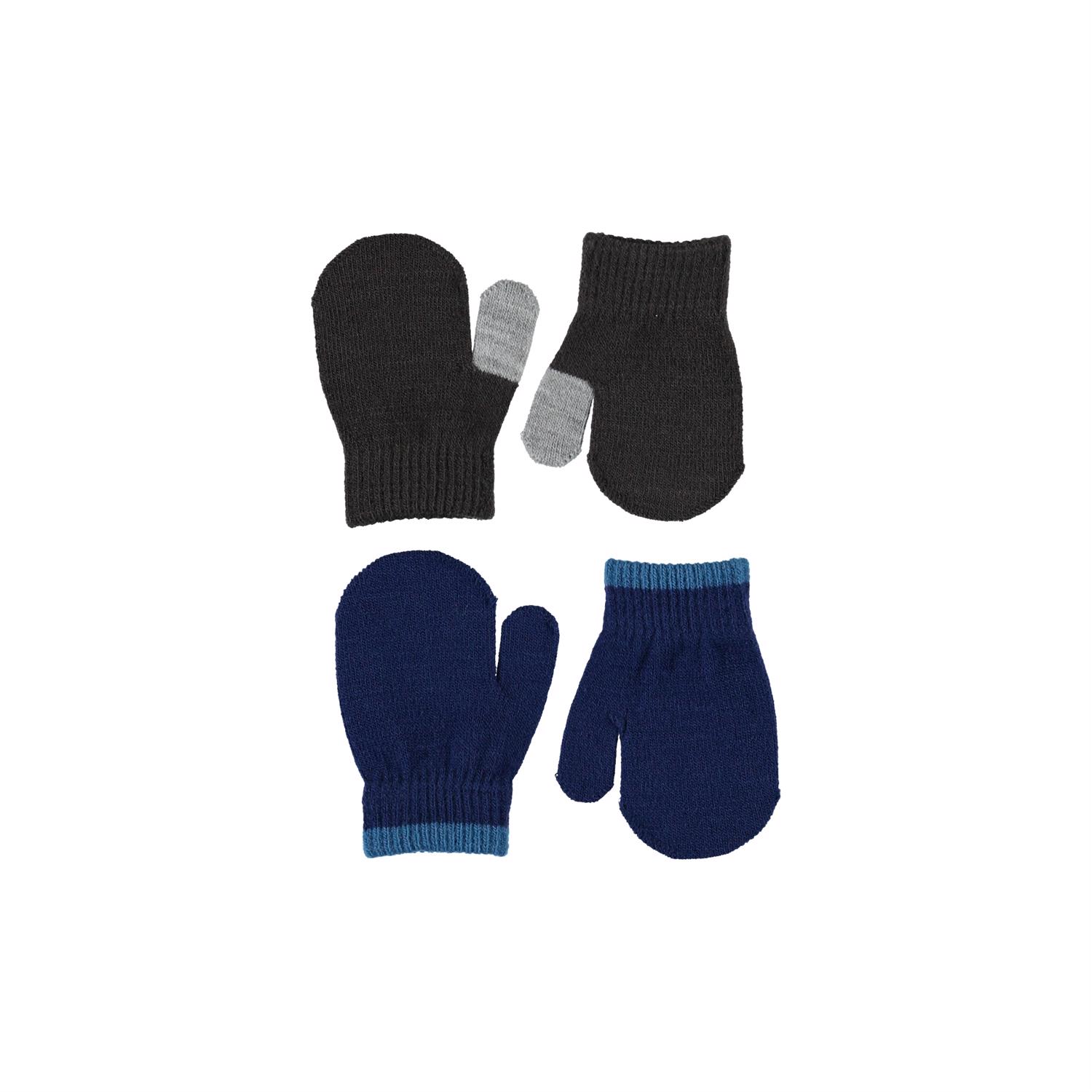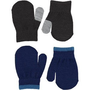 2-pack babyvantar. Ena paret är grå med ljusgrå tumme, och det andra paret år blå med ljusblå tumme.