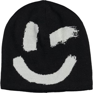 Svart mössa med blinkande smiley framtill.