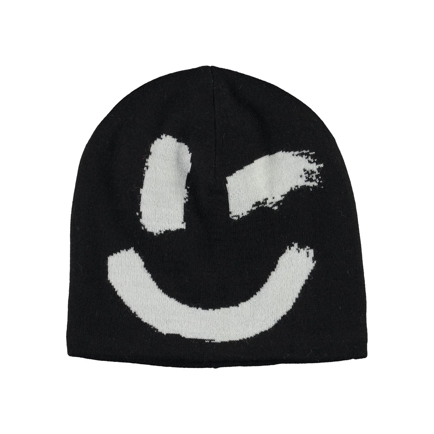 Svart mössa med blinkande smiley framtill.