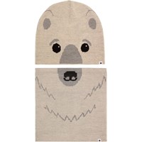 Set med mössa och halskrage för barn i en ullblandning med isbjörnsmotiv
