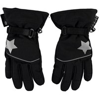 Svarta vattentäta skidhandskar som andas bra och har 3M Thinsulate isolering. Handskarna har slitstarka förstärkningar på handflata och fingrar, samt reflexstjärna framtill. De har även en elastisk kant med justerbart snöre vid handleden, som gör att de sluter extra tätt. Denna produkt har en vattenavvisande PFC-fri impregnering (innehåller t.ex. inte PFOS, PFOA och liknande). Vattenpelare: 10.000 mm. Andningsförmåga: 8.000 g/m2/24t.