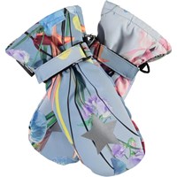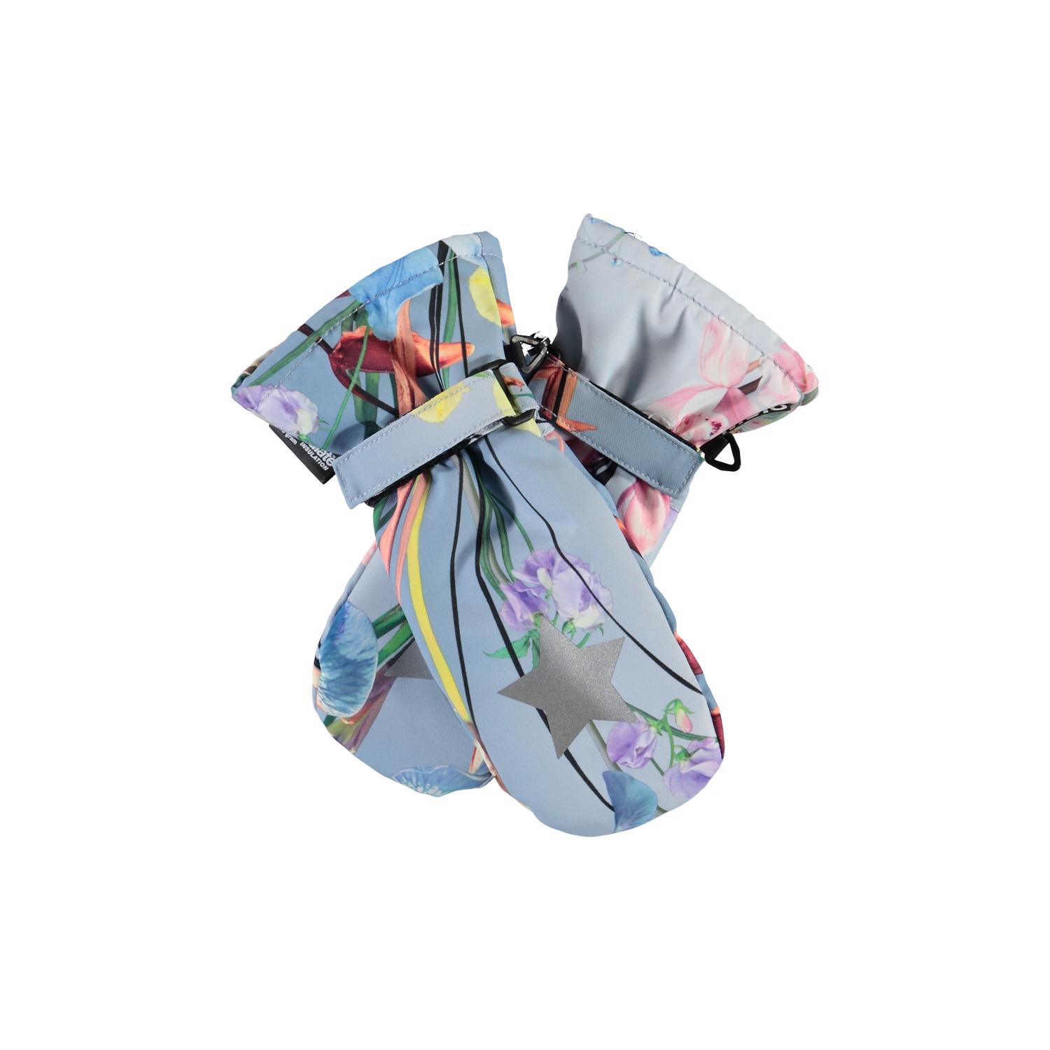Blommiga, vattentäta vantar med 3M™ Thinsulate™ isolering, som andas. Vantarna har stjärnreflexer framtill, samt en elastisk, justerbar kant vid handleden. Produkten har en vattenavvisande PFC-fri impregnering (innehåller exempelvis inte PFOS, PFOA och liknande). Vattenpelare: 10.000 mm. Andningsförmåga: 8.000 g/m2/24t.