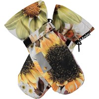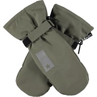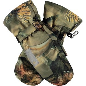 Vinterhandsker til de kolde dage i grøn med print af dinosaurer. På indersiden af handsken og ved tommelfingeren er der sorte gummibelægninger, der giver en god gribehåndflade. Handskerne egner sig godt til alt slags vejr og er perfekte både til hverdagen eller skiferien. Derudover matcher handskerne med Molo’s overtøj i farver og print.