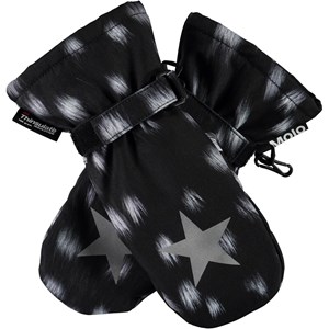 Vattentäta vantar med bra andningsförmåga och 3M Thinsulate isolering. Vantarna är svarta med vita fläckar, har en stjärnreflex på ovansidan samt gummiband och justerbar velcro vid handleden. Yttermaterialet är 51% återvunnet, tillverkat av återvunnen polyester. Vantarna har en vattenavvisande PFC-fri impregnering (innehåller t.ex. inte PFOS, PFOA och liknande). Vattenpelare: 10.000 mm. Andningsförmåga: 8.000 g/m2/24t.