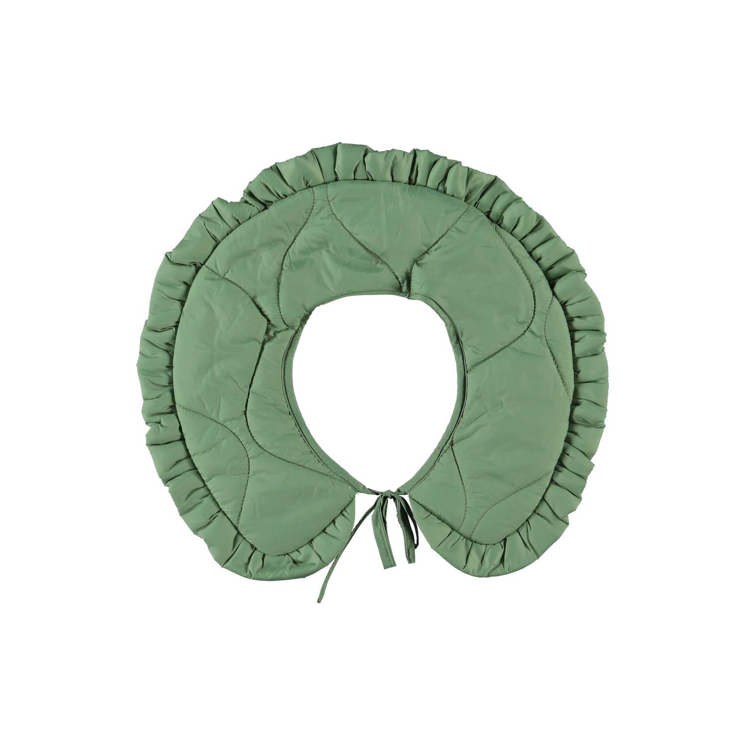 Sillie är en grön quiltad krage, som kan användas till allt från t-shirts och sweatshirts till jackor eller kappor. Kragen knyts i nacken och matchar Molo´s Hailee jacka och Heisley väst.