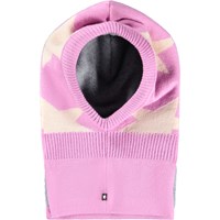Lila balaklava med krämfärgade stjärnor. Balaklavan har slitsar på sidan av nacken så den passar bra över bröstet och axlarna. Tillverkad i en mjuk ullblandning och fodrad med mjukt fleecefoder.