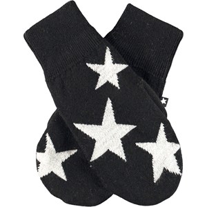Stickade vantar i svart med vita stjärnor.