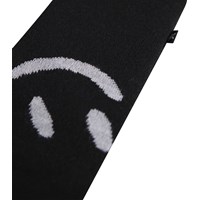Svarta stickade vantar med en vit smiley. Vantarna är gjorda i en mjuk ullblandning.