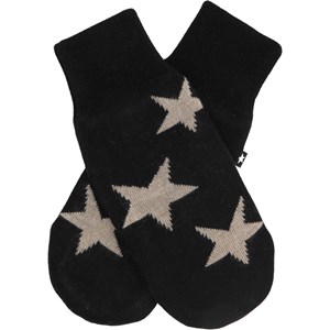 Svarta stickade vantar med ett beige stjärnmönster i en mjuk ullblandning.