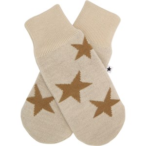 Kräm-färgade stickade vantar med ett brunt stjärnmönster i en mjuk ullblandning.
