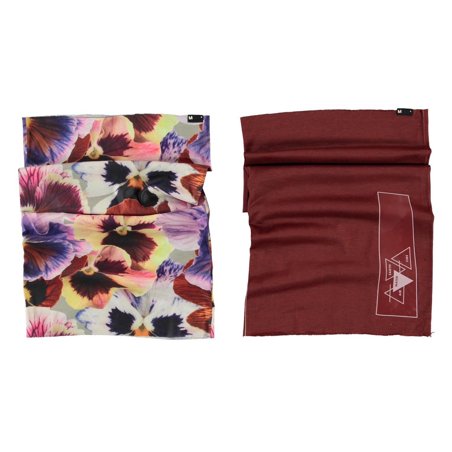 2 stk halskragar som kan användas året runt på många olika sätt. Den ena är med stora blommor och den andra mörkröd. Halskragen kan användas runt halsen eller dras upp över öronen.