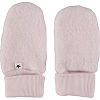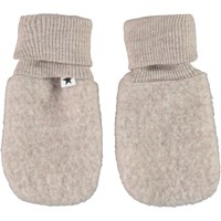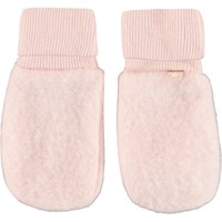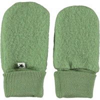 Gröna babyvantar i mjuk fleece-kvalitet av 100% merinoull. Vantarna har tätt åtsittande ribbkanter med uppvik vid handleden och en söt broderad tassdesign i handflatan.