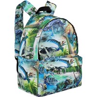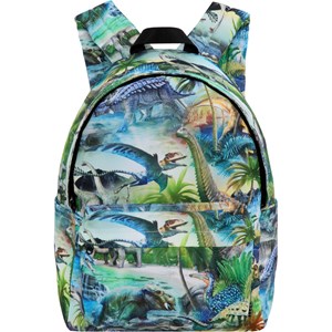 Ryggsäck med dinosauriemönster i 100% återvunnen polyester. Ryggsäcken har ett stort fack med en vadderad ficka, perfekt till en bärbar dator eller platta. Dessutom har den ett fack med dragkedja framtill, flaskfickor på båda sidor, vadderad rygg och axelremmar och en justerbar rem över bröstet som hjälper till at fördela vikten jämt. Dimensioner: 30 x 17 x 42. Volym:21L.