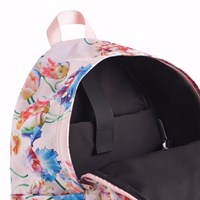 Rosa ryggsäck med blommigt mönster. Ryggsäcken har gott om förvaringsutrymme, inklusive ett vadderat fack som skyddar din dator eller surfplatta. Den är utrustad med en dragkedjeficka framtill, flaskfickor på båda sidor och vadderade rygg- och axelremmar. Dessutom har den en justerbar bröstrem som säkerställer en jämn viktfördelning. Dimensioner: 30 x 17 x 42. Volym: 21L.