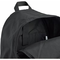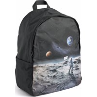 Svart ryggsäck med motiv av en astronaut på månen. Ryggsäcken har gott om förvaringsutrymme, inklusive en vadderad ficka som skyddar din dator eller surfplatta. Den är utrustad med flaskfickor på båda sidor och vadderad rygg och axelremmar. Dessutom har den en justerbar bröstrem som säkerställer en jämn viktfördelning. Mått: 30 x 17 x 42 cm. Volym: 21 liter.