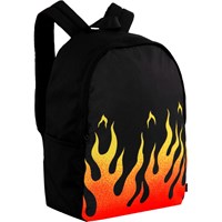 Svart ryggsäck med eldlågor framtill. Ryggsäcken har gott om förvaringsutrymme, inklusive ett vadderat fack som skyddar din dator eller surfplatta. Den är utrustad med flaskfickor på båda sidor och vadderade rygg- och axelremmar. Dessutom har den en justerbar bröstrem som säkerställer en jämn viktfördelning. Dimensioner: 30 x 17 x 42. Volym: 21L.
