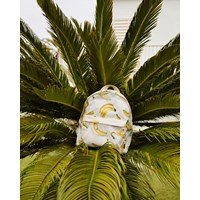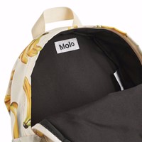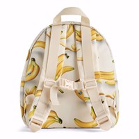 Beige ryggsäck med bananmönster. Den här ryggsäcken är perfekt för små äventyrare i åldern 3-6 år, med ett stort förvaringsutrymme och en praktisk dragkedjeficka framtill. Väskan har vadderad rygg och axelremmar samt en justerbar bröstrem för optimal komfort. Den är idealisk som förskoleväska och kan växa med barnet tack vare de justerbara remmarna, vilket gör den lämplig ända fram till första skoldagen. Mått: 26 x 10 x 30 cm. Volym: 6,5L.