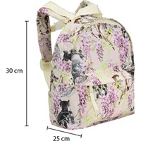 Ljus ryggsäck med söta kattungar som leker i blåregn. Denna ryggsäck är perfekt till små äventyrare i åldern 3-6 år. Med ett stort fack och dragkedja med ficka framtill kan man få plats med vattenflaska, snacks, pennor, matsäck och ett extra ombyte kläder. Den har vadderad rygg och axelremmar samt en justerbar bröstrem för extra komfrot. Det är en fantastisk förskoleväska och den kan användas ända fram till första skoldagen då remmarna kan justeras i takt med att barnet växer. Storlek: 25 x 9 x 29. Volym: 6,5L.