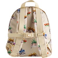 Krämfärgad ryggsäck för barn i åldern 3-6 år med djurmotiv. Den har ett stort fack, framficka med dragkedja, vadderad rygg och axelremmar samt justerbar bröstrem för optimal komfort. Mått: 26 × 10 × 30 cm. Volym: 6,5 L.