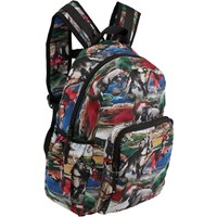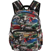 Rummelig rygsæk med print af fortidens dyr. Rygsækkens materiale er fremstillet af recycled polyester. Rygsækken har en udvendig frontlomme med lynlås, lommer i begge sider til eksempelvis en drikkedunk, vatteret ryg, strop til ophæng samt justerbare skulderstropper. Dette Molo produkt er recycled og fremstillet af genanvendeligt polyester, som er produceret af brugte plastikflasker og andet restaffald. Produktionen af genanvendt polyester kræver langt færre ressourcer og udleder mindre CO2, hvorfor Molo’s recycled rygsække er det bæredygtige valg.