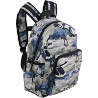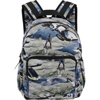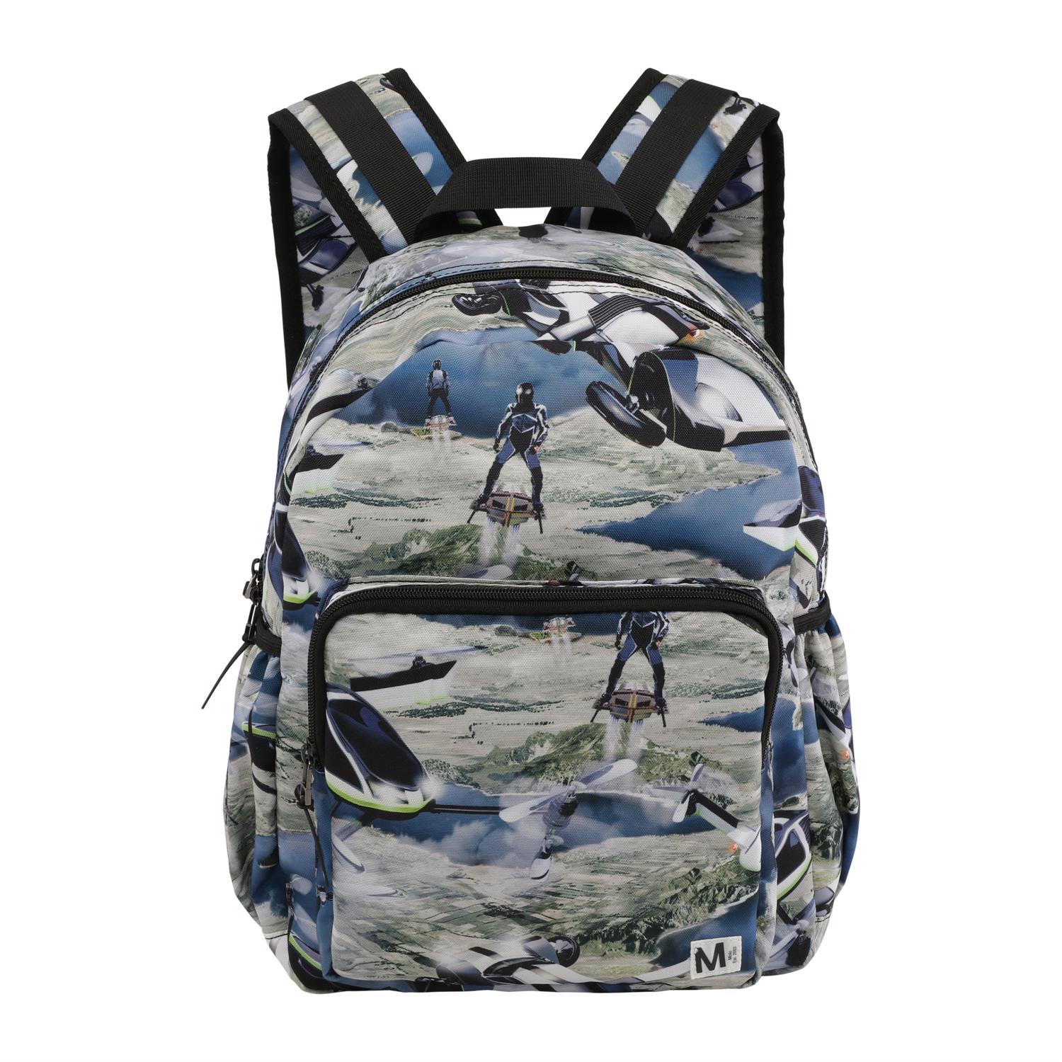 Rymlig ryggsäck med ett framtidstryck. Ryggsäckens material är gjort av återvunnen polyester. Ryggsäcken har en ytterficka med blixtlås och fickor på båda sidor, vadderad rygg, rem för upphängning och justerbara axelremmar. Denna Molo-produkt är tillverkad av återvunnen polyester som tillverkats av begagnade plastflaskor och annat restavfall. Produktionen av återvunnen polyester kräver mycket färre resurser och släpper ut mindre koldioxid. Därför är Molos återvunna ryggsäckar är det hållbara valet.