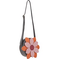 Rund grå väska med sött blommigt motiv framtill. Väskan har justerbar axelrem.