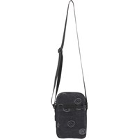 Liten crossbody väska i grå jeans med smileys. Axelremmen kan justeras i längden och väskan stängs med dragkedja.
