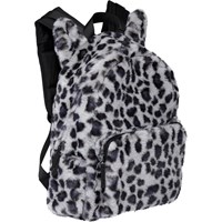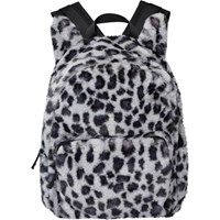 Rymlig ryggsäck i fuskpäls i snöleopardens färger och fläckar. Ryggsäcken har en ytterficka framtill med justerbara axelremmar med blixtlås.