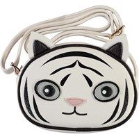 Vit crossbody väska med ett sött tigermotiv på framsidan. Väskan har en justerbar axelrem.