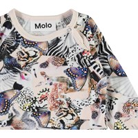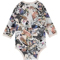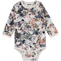 Fonda är en långärmad babybody med djur som utgör ett fint mönster. Fonda har en tryckknapp i kragen och mellan benen, vilket gör bodyn lätt att få på och av.