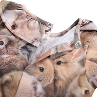 Body för de små i ekologisk bomull med fluffiga djur. Bodyn har långa ärmar och en volangkant runt halsen. Knäppningen på baksidan och mellan benen gör den enkel att ta på och av.
