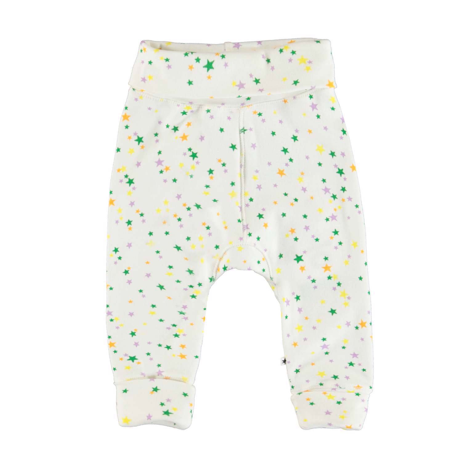 San är ett par mjuka babybyxor med färgrika stjärnor. Byxorna har en bred kant i midjan och vid besnlut som båda är vikta. Kombinera med matchande överdel.