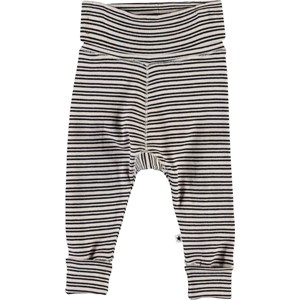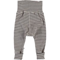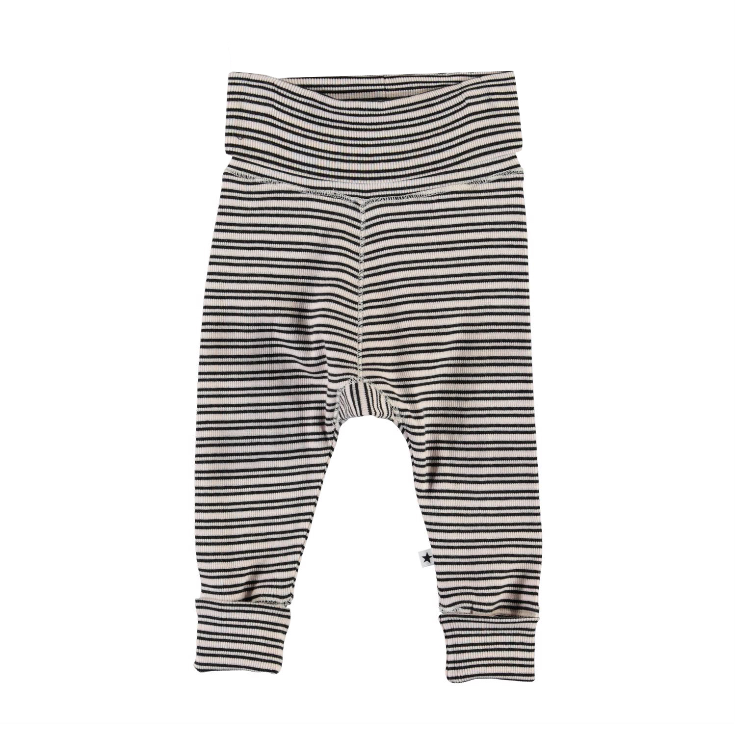 Sara är babybyxor i rosarandig ribb. Byxorna har bred resår i midjan, samt uppvik vid benen.