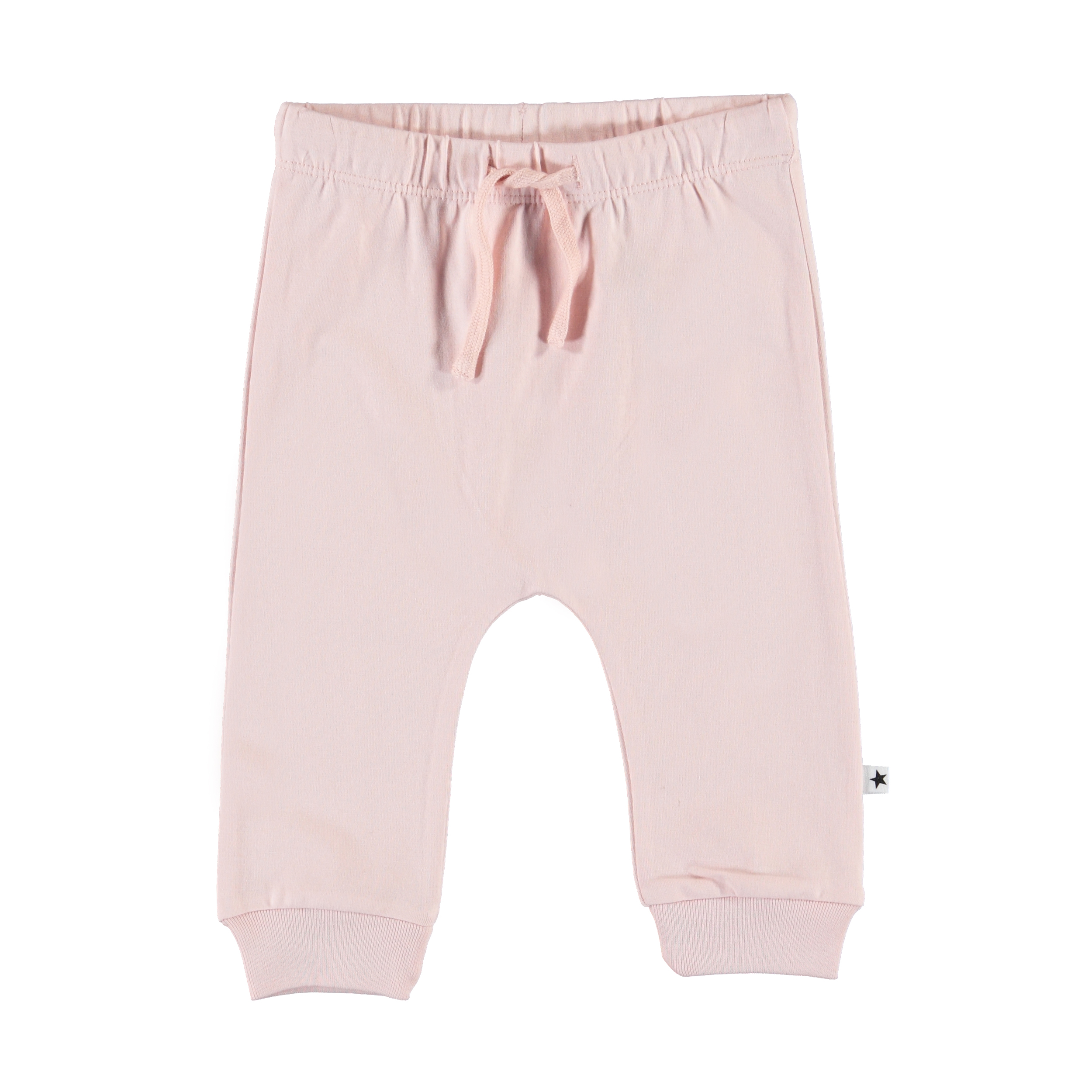 Sille är ett par rymliga baby byxor i ljusrosa. Sille har resår i midjan med knytband och ribb vid benslut, som ger en skön passform.