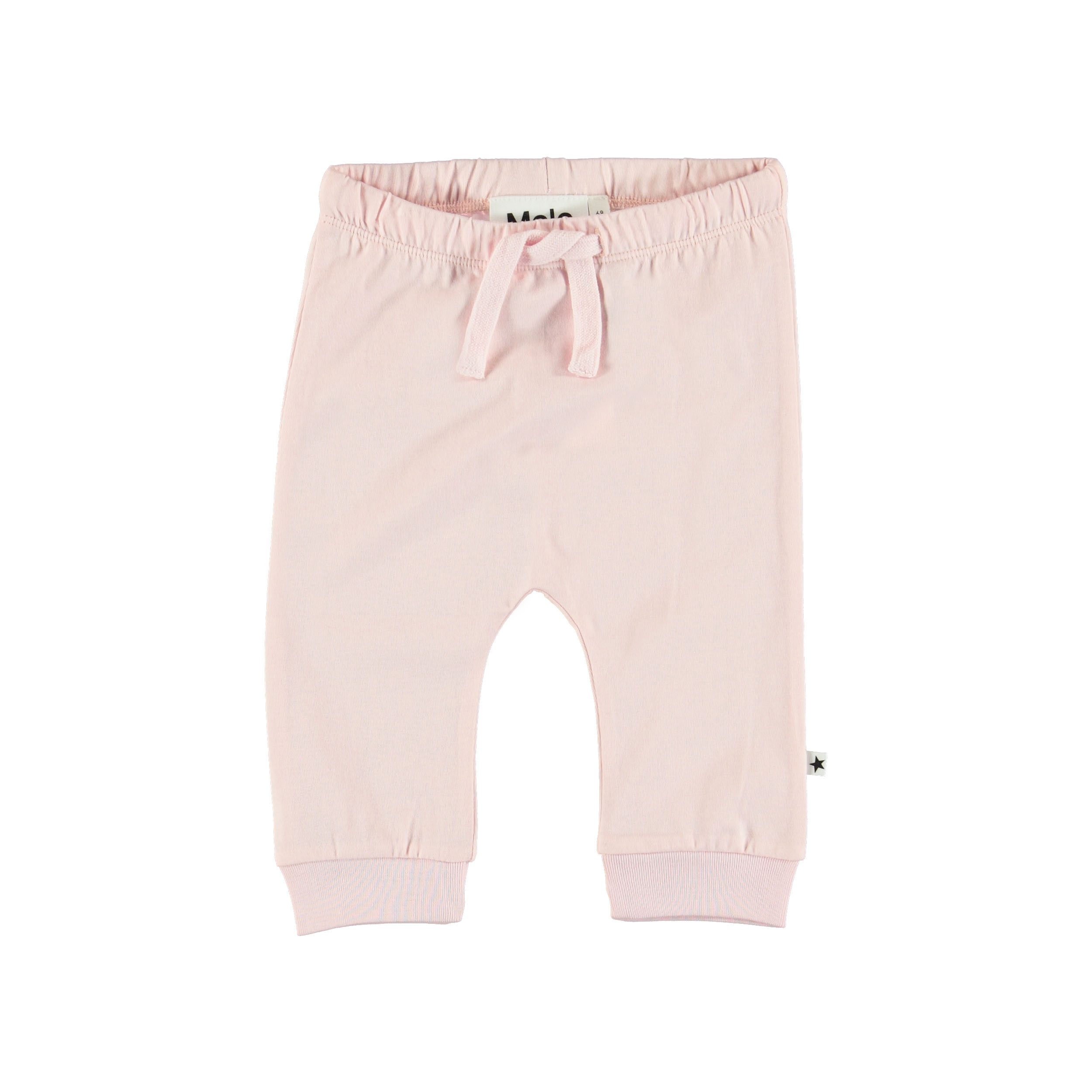 Sille är rymliga baby byxor i ljusrosa. Sille har resår i midjan med knytband och ribb vid benslut, som ger en skön passform.