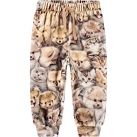 Mjuka byxor för de små i ekologisk velour. Byxorna har djurmönster, resår och snörning i midjan samt muddar runt ankeln. De är lätta att ta av och på och ger gott om rörelsefrihet. De har en borstad insida vilket innebär att de är härligt mjuka och varma att bära. Kombinera dem med den matchande tröjan för en komplett outfit.