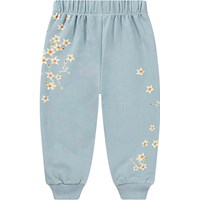 Ljusblåa sweatpants i ekologisk bomull för de små. Byxorna har gummiband i midjan och dragsko, samt ribbade muddar vid benen. De är lätta att ta på och av och ger gott om rörelsefrihet. Byxorna har ett fint tryck av små, vackra vita blommor.